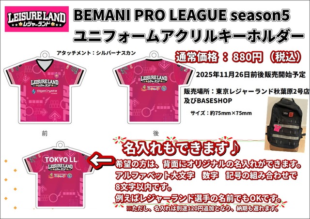 ※名入れは、受注発注商品になります。ほかの商品より到着が遅くなります。 ※ほかの商品と同時注文ですと到着が遅くなるため、ほかの商品は早くほしいと希望される場合は、別個で注文をお願いします。 新たに、チームレジャーランドのユニフォームをモチーフにしたアクリルキーホルダーが登場しました! このキーホルダーは、選手たちの情熱を感じるデザインで、ファンにはたまらないアイテムです。あなたのカバンや鍵に付けることで、いつでもチームの応援気分を味わうことができます。プレゼントにも最適ですので、大切な人への贈り物にもピッタリ! サイズは75mm×75mm ちょっと大きめでかわいい仕上がりになっています。 ぜひ、このアクリルキーホルダーを手にして、チームの一員としての絆を深めてみてはいかがでしょうか。あなたの応援を形にしてみましょう! さらになんと!! 別料金でオリジナル名入れも可能です。名入れの場合は、BPLルールに準じアルファベット大文字・数字・記号いずれかの組み合わせで8文字以内となります。 ご自身のDJネームはもちろん、推しの選手の名前を入れてもOKです。 ただし、名入れには、3週間ほど時間をいただきます。定期的に〆て作成にかかり、出来上がり次第の発送となります。そのため、他商品と一緒に発注された場合は、出来上がり次第の同梱になりますため、ほかの商品を先に発送希望の場合は別注文をお願いします。