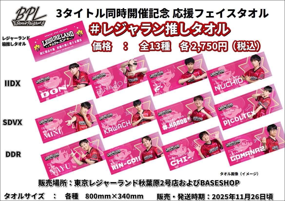 新たに、チームレジャーランドの選手応援タオルが登場しました!