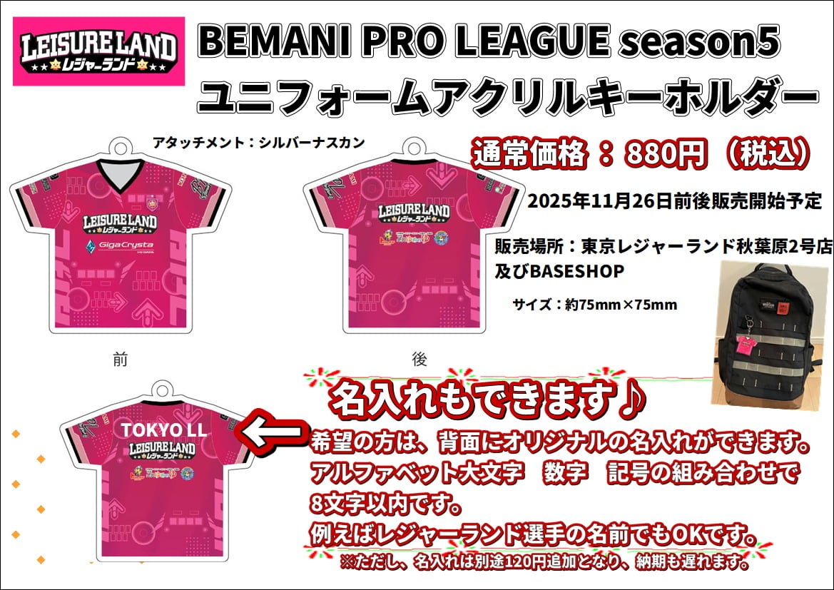 新たに、チームレジャーランドのユニフォームをモチーフにしたアクリルキーホルダーが登場しました!